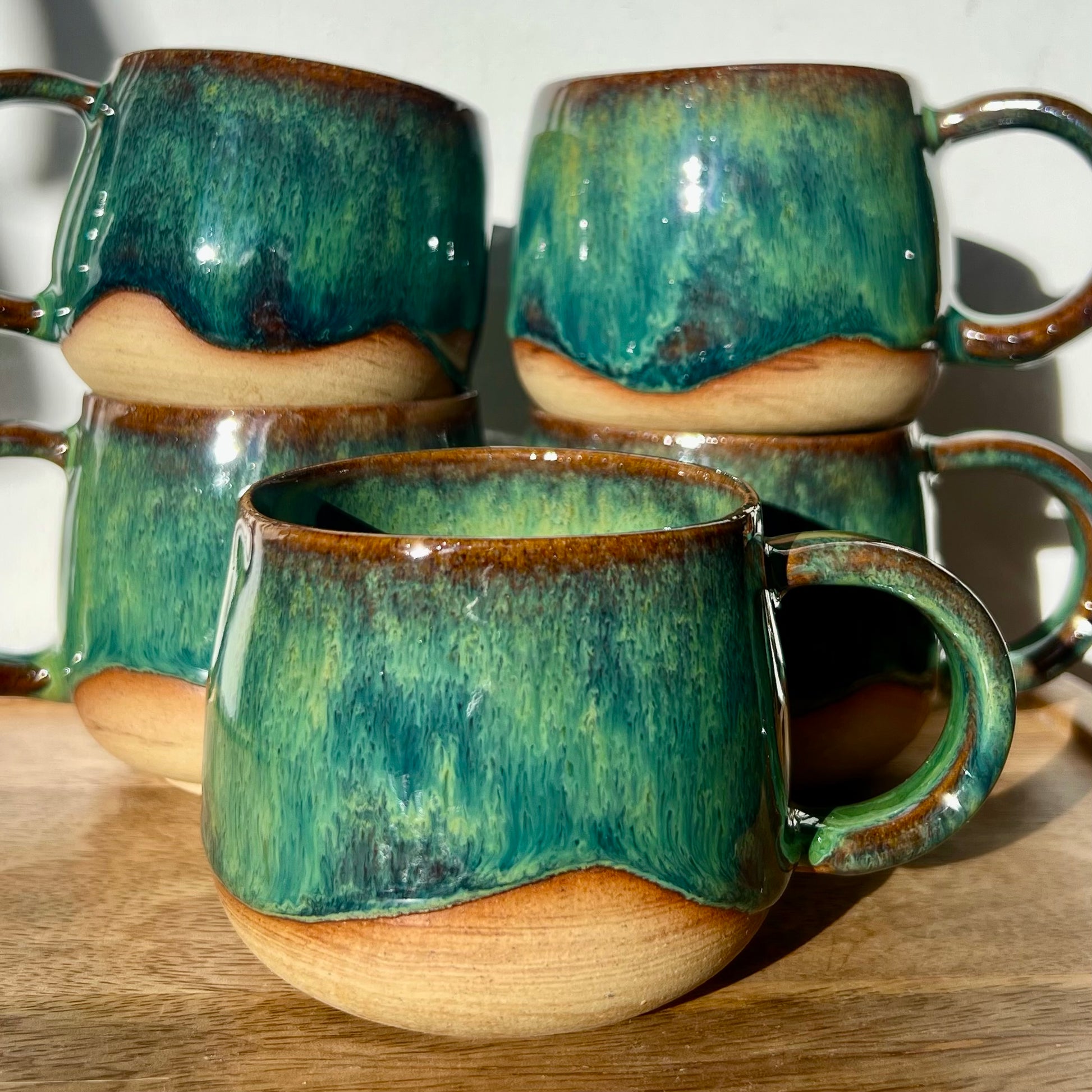 Wheel-thrown and hand-glazed, this warm brown stoneware mug has a beautiful drippy glaze that reminds me of mossy hills after rain. They say there are forty shades of green in Ireland, and this one might just be my favourite.